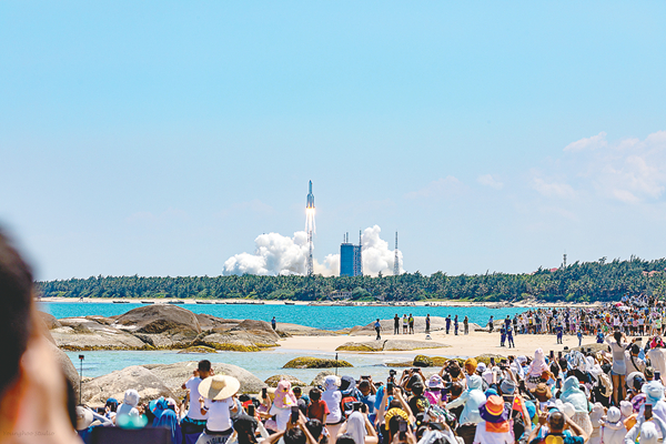 5年来,中国加快科技自立自强,“嫦娥五号”探月,“天问一号”落火,中国空间站开启“有人长期驻留”新阶段。图为2022年7月24日,中国空间站问天实验舱在中国文昌航天发射场发射升空。(图片来源:人民视觉)